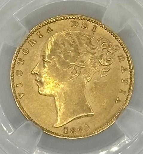 1860 Great Britain 1 Sovereign Gold Coin – Queen Victoria “Large 0” – MGC Graded AU-58